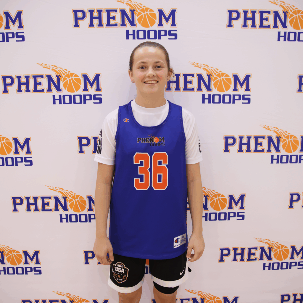 Next, Sally Risk is a 5-foot-9 prospect in the Class of 2028. Although she highlighted a well-rounded array of skills, she arguably stood out even more through her nonstop motor. Risk knocked down shots and filled in the gaps offensively while defending with toughness and actively making hustle plays. Next in her development process is working on getting quicker, as it would make her a more dynamic threat off the bounce. Coach Woodard on Risk: “Sally is a high-motor, high-energy player who does a lot of things well on the court. She’s an elite perimeter shooter. Her effort on defense gives her the ability to come up with steals and easy layups in transition. She understands how to run the lanes in transition as well as spacing the floor in the half court to display her shot-making ability. She’s able to knife through the defense and get off her midrange pull-up that was extremely effective. I look forward to seeing her during the school season.” Risk made a lasting impression during her time at camp and should be a key piece for Gaston Christian over the coming years.